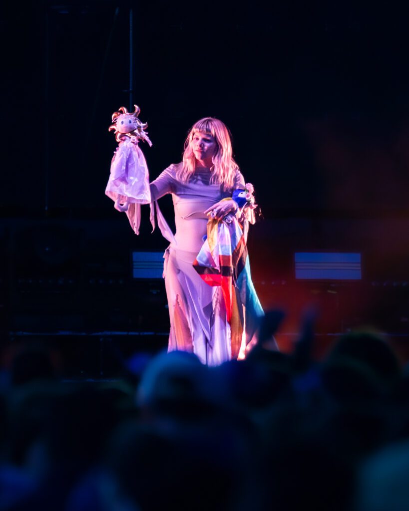 Aurora cautivó al público chileno con una presentación profundamente emotiva, en uno de los momentos más humanos del festival, recibió una camiseta del club Palestino, gesto que agradeció visiblemente conmovida antes de dedicar una canción a los niños víctimas de la guerra en Gaza, su show fue un acto de empatía y arte, una experiencia que trascendió lo musical.