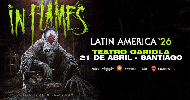 Los pioneros del death metal melódico de Gotemburgo están de vuelta. IN FLAMES acaba de confirmar su esperado regreso a Chile, agendando un nuevo concierto en Santiago luego de dos años desde su última visita al país. La cita será el martes 21 de abril de 2026 en el Teatro Cariola, como parte de una gira latinoamericana que también recorrerá otros países de la región.