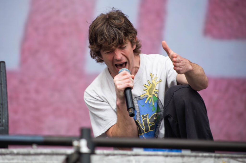 Si hay algo que distingue a Turnstile, es su potencia en vivo, sus conciertos no se observan, se viven, el público baila, canta, arma mosh pits y se funde en una experiencia comunitaria marcada por la euforia Brendan Yates, su vocalista, transformó el escenario en un espacio sin barreras, lanzándose al público y reforzando una conexión visceral que ha sido clave en la masificación del grupo.